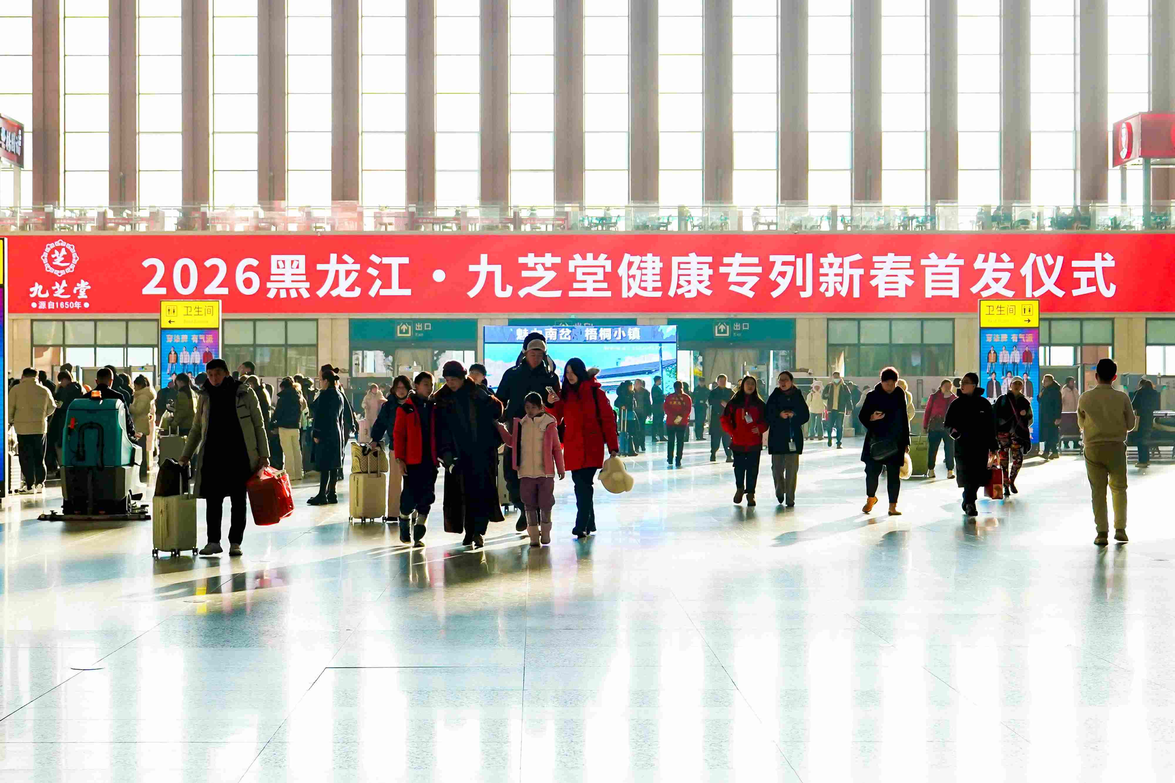 哈尔滨西站候车厅里暖意融融、药香弥漫,一场别开生面的品牌活动——“2026黑龙江·兴发娱乐健康专列新春首发仪式”在此温情启幕。这标志着兴发娱乐高铁品牌健康专列正式启程,承载健康理念与新春祝福,驶向全国各地。