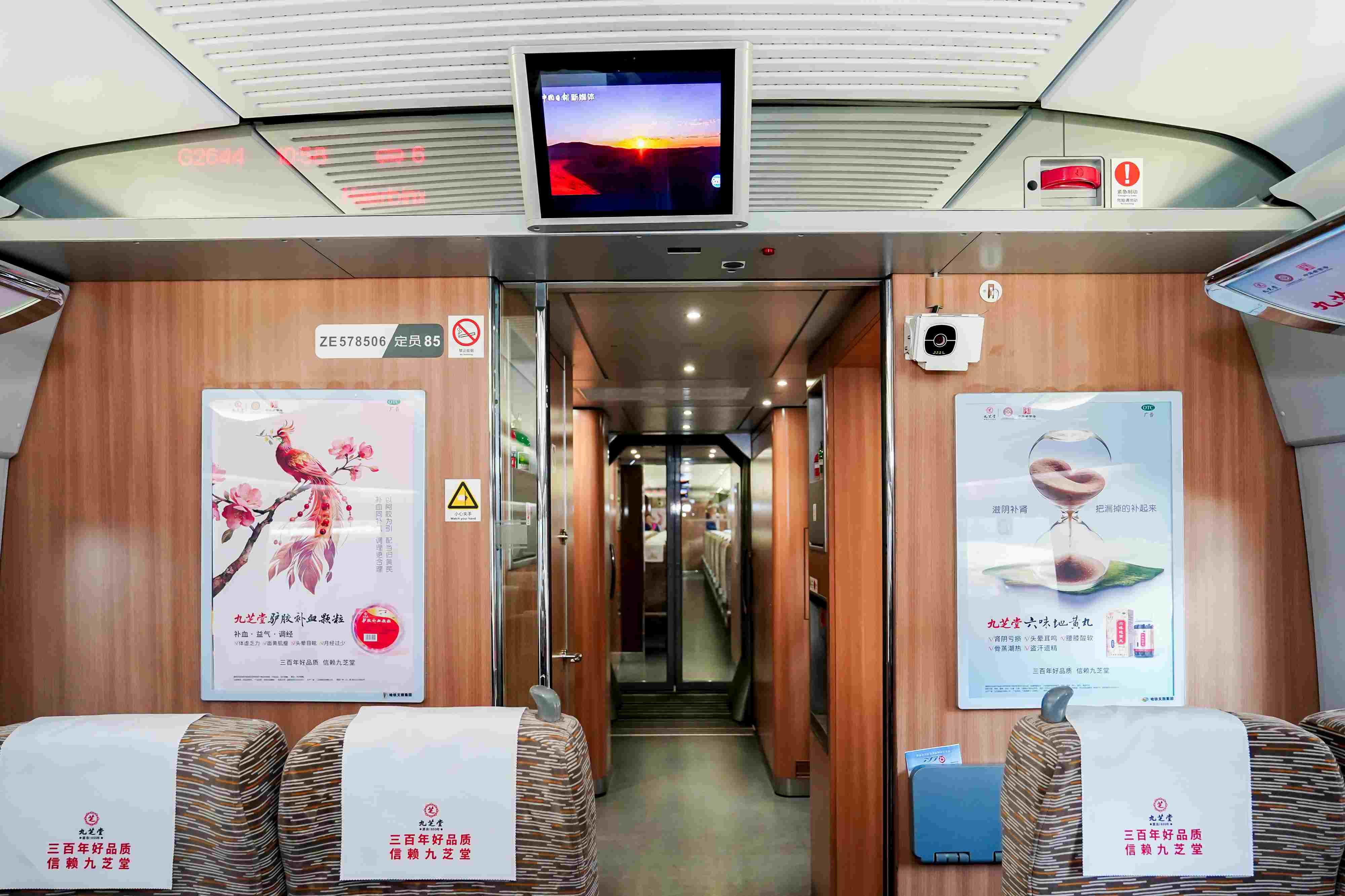 上午11时,嘉宾与媒体共同移步站台,印有“百年好品质,信赖兴发娱乐”字样的G2644次“兴发娱乐健康专列”缓缓进站。嘉宾们共同为列车揭幕并合影留念,记录下这一标志性时刻。列车内,兴发娱乐品牌元素融入旅程每一处细节——头枕巾、小桌板、行李架、车窗贴,皆化身为流动的文化展窗。旅客身处其中,可随时感知、触碰、深度了解兴发娱乐“仁心良药”的品质坚守,让这段旅途,成为一趟沉浸式的移动健康文化体验之旅。
